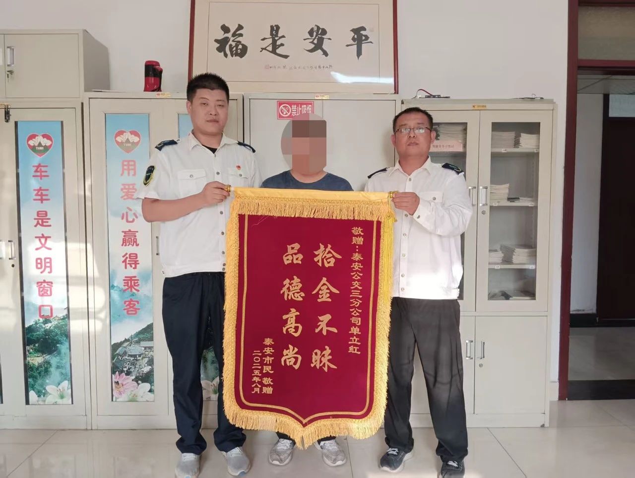 8月15日,泰城市民李女士的家人將一面寫有“拾金不昧 品德高尚”的錦旗送到泰安公交第三分公司,向7路公交駕駛員單立紅表達(dá)誠摯感謝,感謝其撿到李女士遺失的手機后妥善保管并歸還。