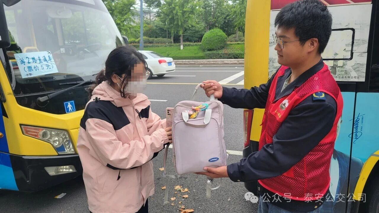 國慶假期第四天,來自新疆、在濟南上大學的阿依夏姑娘,與同學相約登泰山游玩,卻在下山返程時遭遇了一場 “小意外”——匆忙間,她將裝有身份證、學生證等重要證件的背包遺落在了游2路直通車的座位上。“當時腦子一下就慌了,證件丟了不僅回不了濟南,后續(xù)辦事也會受影響。” 回憶起當時的情景,阿依夏仍難掩焦急。情急之下,她想到了向泰安公交第六分公司求助,工作人員耐心傾聽她的情況,詳細記錄下乘車時間、下車地點以及背包的特征。