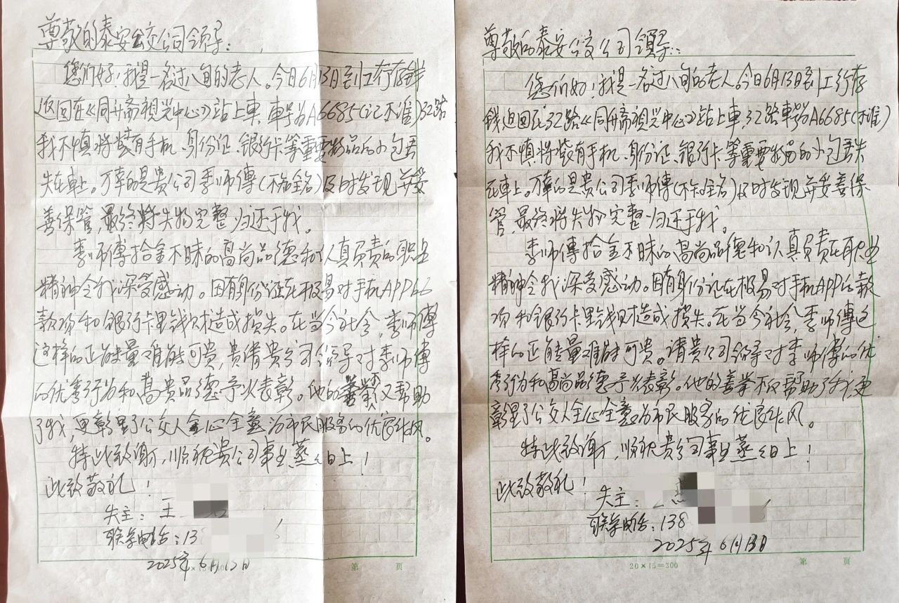 當(dāng)天,王大娘順利領(lǐng)回失物。她感慨道:“李師傅不僅拾金不昧,還主動(dòng)聯(lián)系、妥善保管,讓我這八旬老太太心里特別暖。”為表謝意,老人特意手寫(xiě)感謝信,一份致謝公交公司,一份致敬李師傅,用質(zhì)樸的文字傳遞社會(huì)正能量。